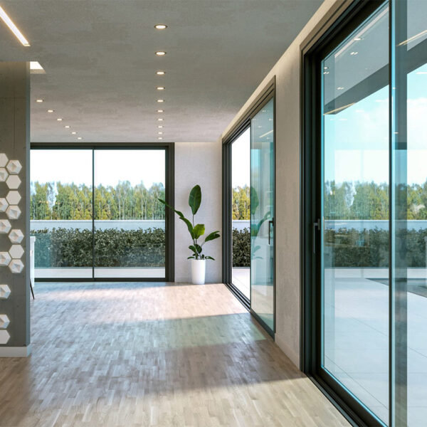 Aluminum patio doors help to frame the picturesque outdoors while providing your home with natural light. They form a transparent barrier, seamlessly integrating indoor and outdoor spaces.